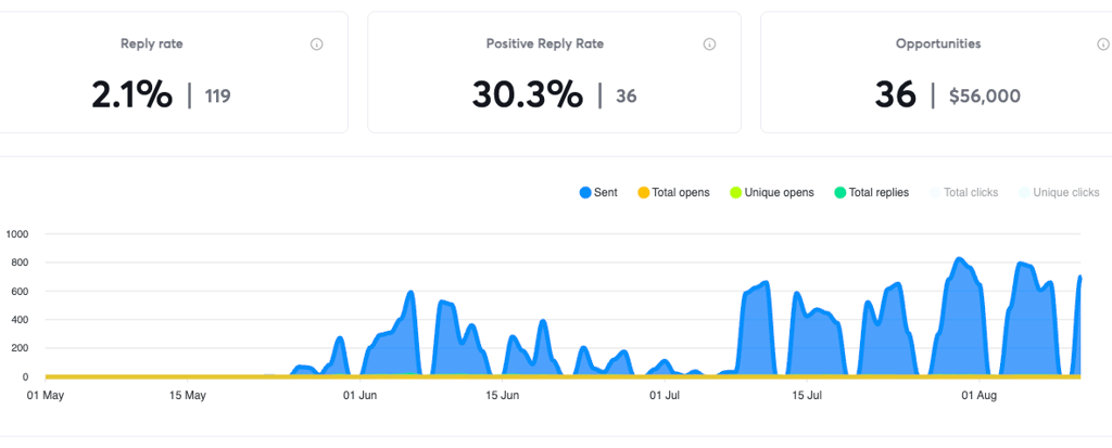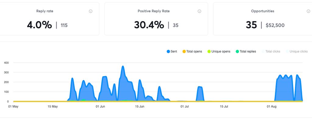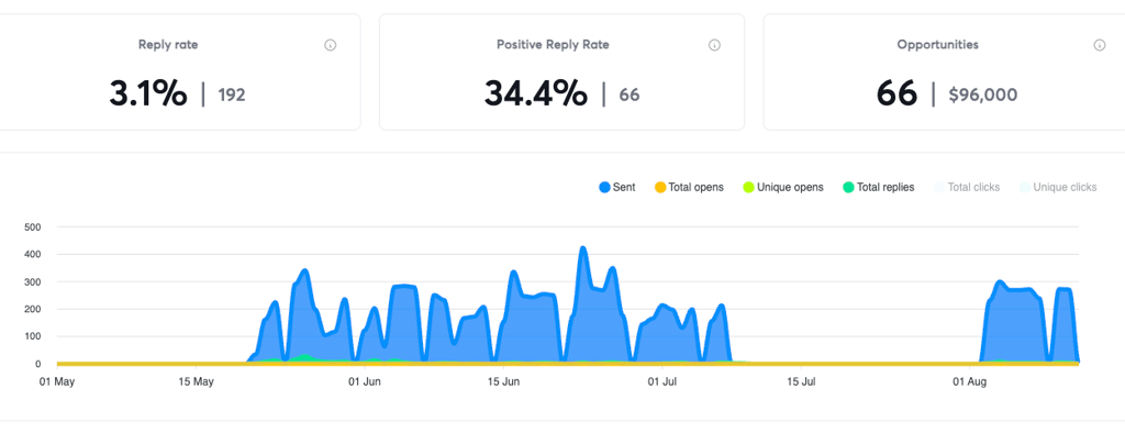 Reply Rate: 3.1% – Above the standard for cold outreach in the industry.