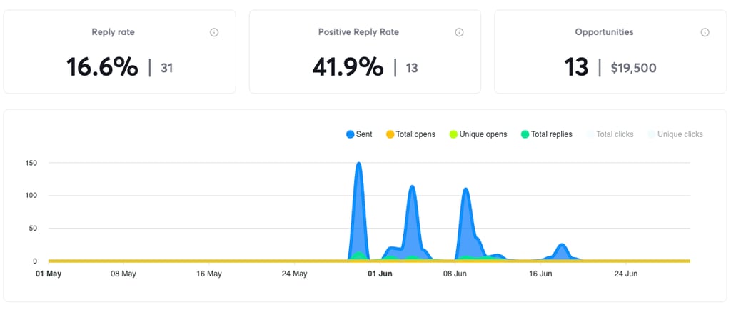Reply Rate: 16.6% – Far above industry averages for cold outreach.