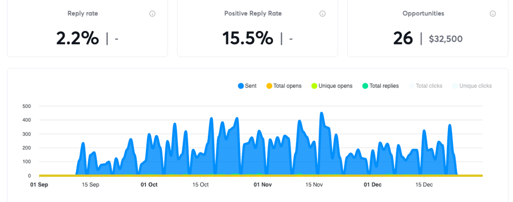 Reply Rate: 2.2% – Above benchmark for large-scale staffing outreach.